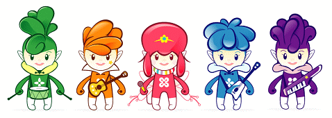 花博吉祥物家族除“芽比”外,還有5位花精靈,包括綠色的百合花精靈“百兒”、紅色的蝴蝶蘭精靈“蘭兒”、紫色的郁金香精靈“小郁”、藍色的繡球花精靈“小球”,以及黃色的向日葵精靈“小葵”。