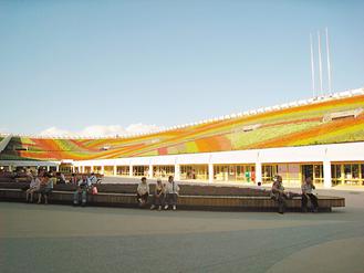 如何把全數(shù)21萬盆的草花擺上足球場的看臺,還要呈現(xiàn)出“七道彩虹”的圖案是個大工程。丁錫鏞說,考慮過擺設(shè)斜放的盆架裝置草花,也曾想過編置藤架供草花攀藤生長,后來決定在看臺搭設(shè)底座,然后依照圖案上色,種花的工人只要依照底座的顏色,把相對應(yīng)的草花放進(jìn)花盆中就錯不了。