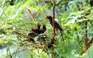 通常成小群出現于中、低海拔的闊葉林及次生林中。性群棲、兇悍、喜喧嘩,有攻擊其它鳥種的習性,常成群呈直線飛行,甚為壯觀。以植物果實為食,亦兼食其它鳥類、兩棲類及其它哺乳類。臺灣特有種,不普遍留鳥。常發出似“嘎─鏘、嘎─鏘”或“嘎嘎─穗”之聲。
