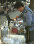 鐵路餐廳地址:豐原市南陽路平交道旁營業時間:0800~1600店內特色:豬血湯、豬腸湯 南陽路平交道旁有家搭著棚架賣豬雜湯的路邊攤,當地人戲稱為鐵路餐廳。食客坐在板凳上,面對熱騰騰的湯汁,嘴里呼嚕品嘗,襯著轟隆隆的火車聲,鄉土趣味十足;由于老板將內臟清洗得十分干凈,加上湯頭好,完全不需胡椒壓制腥味,湯頭自有一股甘甜勁,粗陋的小店終能抓住饕客的胃。 臺銀豆花地址:豐原市中正路臺灣銀行旁營業時間:0800~1600(賣完即收)休息時間:日期不定店內特色:傳統豆花、花生豆花這攤位于臺銀旁的小攤販既沒店招,也沒座椅,但憑著香滑爽口的豆花,每天顧客不斷,早上8點開始,三大桶賣完就收攤。臺銀豆花祖傳三代已70余年,從選料、浸泡、磨漿、濾渣到加入石膏等過程,拿捏得恰到好處,因此口感格外Q滑,搭配的姜湯也使用土產老姜,少了苦辣味,多了份香濃。