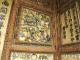 摘星山莊位于臺中縣潭子鄉(xiāng),列為縣級古跡,占地2500余坪,已有130年歷史,曾被譽(yù)為臺灣十大民宅之首,無論彩畫、泥塑、木雕、交趾燒樣樣精彩,完整呈現(xiàn)中國住宅工藝之美。摘星山莊為土角厝建筑,歷時6年完工,為三進(jìn)四合院多護(hù)龍建物。“無處不雕,無處不書,無處不畫”是摘星山莊最大特色,彩陶、石雕、字畫浮雕是最常見的墻面裝飾,其中以正廳大門最為繁復(fù);正廳采“凹斗門”設(shè)計(jì),隱含顯示門第的意味,門楣上的“文魁”古匾,為同治年間朝廷所賜,入門處,自墻身中線以上全部鋪滿艷麗多彩的交趾燒,令人眼花繚亂。其他墻面也有不同的裝飾,如高雅的竹節(jié)窗、生動有趣的交趾燒墀頭,處處夸耀著主人當(dāng)年的財富及身分。墻面藝術(shù)在歲月侵蝕下已失去原有光彩,再加上有意或無意的人為破壞,都已不甚完整,令人不勝欷歔。