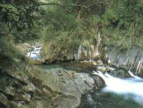 溫泉所在的溪谷深遂狹窄,兩岸峭壁垂直矗立約百余公尺,情勢險惡的地形中,但見對岸山崖上兩道溫泉瀑布直瀉而下,谷地中水氣蒸騰氤氳,如入蠻荒之境,而要享受泡湯樂趣,還得渡過驚險的獨木橋,或涉越深及胸膛的冰冷溪水,這正是四棱溫泉“野味十足”的魅力。