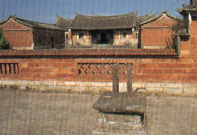 <%beginrecord%><%endrecord%> 李騰芳古宅建于清咸豐10年(1860年),由李金興家族起造,百余年來,一直是大溪最為豪華顯赫的傳統宅院,因年代久遠,保存完整,同時在大溪開發史上扮演關鍵地位,現已列屬二級古跡。 古宅座落于青翠田野中,紅磚黑瓦與綠野相輝映,十分醒目。由前落的三合院及后落的四合院所組成的二進二護龍的宅院,前有內外埕及一方半月池,四周竹林環抱,形成內方外圓的配置,圍墻共有內外兩層,兩側各設門樓一座。內部為木質架構,用材多、雕飾細致精美,是古宅最大的特色,而梁間掛滿了傳家訓子的對聯題匾,一派書香門第的風范。此外,在第一進正門門額上高懸“大夫第”橫匾,廳內亦有為數眾多的官銜匾額,埕外則留有兩座石雕旗桿座,官家宅第的威望展露無遺。 乘車風向標: 由桃園市中華路或中壢搭往大溪的桃園客運,于新街尾站下車,經和平路老街42號旁的月眉通路,再循李金興古宅指標前行即抵。