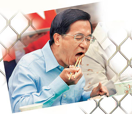 熟悉扁家的人士指出,其實阿扁吃飯不挑食,不管菜色如何,一碗二、三十元的鹵肉飯也好、高級魚翅也好,他都能吃得津津有味。