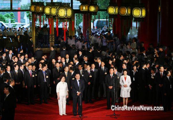大陸海峽兩岸關(guān)系協(xié)會(huì)會(huì)長陳云林三日率協(xié)商代表團(tuán)到臺(tái)。大批媒體記者在臺(tái)北圓山飯店采訪。圖片來源:臺(tái)灣“中央社”