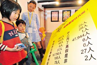 剝開族譜尋寶趣活動在艋舺剝皮寮舉行,參觀的小朋友有些特殊的字都不認識,更別說看過這些姓氏,站在統(tǒng)計表前,努力回憶。圖片來源:聯(lián)合晚報