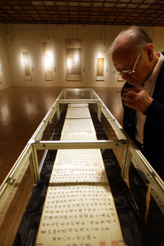 第7屆漢字文化節20日在“中正紀念堂”舉行,推出“四百年時空名家書法展”,展出媲美故宮文物的書法家真跡。 圖片來源:“中央社”