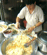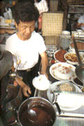 提到新竹小吃,馬上令人聯想到城隍廟。新竹城隍廟小吃在日據時代就已經成形,當時有“庶民味覺的殿堂”之稱,時至今日,這里仍然是新竹小吃的大本營,范圍涵蓋了城隍廟和法蓮寺前方的廣場,與廣場外圍的東門街、中山路一帶,約50家攤子搭棚架瓦,把古跡級的城隍廟團團圍住,形成一個熱鬧的商區,其中不乏三代相傳的知名老攤。