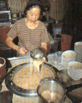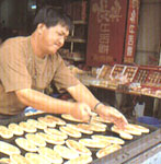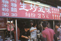 繁盛時代的鹿港,上層社會家家擁有專業(yè)的廚師,餐餐變化新穎的24菜式、36菜式,市井社會因通商港口吸引來不同省籍的人士,也帶來眾多鄉(xiāng)土小吃,令人目眩的飲食藝術(shù)就在這樣的背景下應(yīng)運而生,也衍生出今日鹿港小吃豐富多樣的面。 鹿港小吃可分為海鮮小吃與鄉(xiāng)土小吃兩大類。鹿港雖然因淤淺而沒落,但泥質(zhì)海灘卻也成為魚、蝦、貝類的天堂,使鹿港成為海鮮產(chǎn)地,其中以蚵仔、蟳、文蛤、蝦蛄、烏魚子等最有名。到鹿港來吃蚵仔煎、蚵仔湯,其肥美料多的程度,可是外地比不上的;蝦蛄是一種狀似螻蛄與蝦子的海產(chǎn),鹿港的傳統(tǒng)吃法是以鹽腌過,極適下飯,不過現(xiàn)在則多用油炸,香酥鮮脆,越吃越愛吃;咸文蛤也是滋味絕佳的鹿港特產(chǎn),經(jīng)過鹽漬冷藏,風(fēng)味甘甜;而冬季魚汛期,烏魚子更是鹿港的當(dāng)令佳肴,許多店家門口吊掛著風(fēng)干烏魚子,供人選購。 鹿港小吃多集中在第一市場與天后宮廟口兩處:第一市場位在金盛巷(九曲巷)旁的民族路上,小吃種類極多,較著名的有生炒五味、蔡氏水晶餃、文燦面、楊州肉圓、王罔面線糊、阿桃醬菜等,第一市場周邊小吃云集,往往從白天營業(yè)到晚上8、9點才漸收攤。天后宮廟口則聚集了許多蚵仔煎店,其中以30多年的輝鴻蚵仔煎最有名。而鹿港鎮(zhèn)上還有許多富特色點心,如振味珍的鮮肉包子與玉津春的素包、芋頭饅頭,皆料實味美,出爐時刻往往香味四溢,甚受歡迎。 鹿港人有句諺語“富過三代,方知飲食”,這句話正說明了鹿港傳統(tǒng)糕點以精致聞名的原因。昔日的酒肆茶樓,雖已隨歷史傾頹,但清香可口的茶點,卻成為鹿港獨樹一格的特產(chǎn)。鹿港的糕餅制作沿襲自唐山師傅,至今仍大多遵古法制作,其中以牛舌餅、豬油荖、鳳眼糕等最出名。 鹿港牛舌餅不同于宜蘭牛舌餅的脆硬風(fēng)味,而以皮酥餡軟獨步一方,游客可在中山路的長興食品行及天后行找到地道風(fēng)味,天后宮附近也有不少店家當(dāng)街烘烤牛舌餅,香味四溢。豬油荖分為“米荖”、“麻荖”、“花生荖”三種,外層香甜內(nèi)松脆,為昔日老少咸宜的茶點。鳳眼糕特色則是入口即化,因狀如鳳眼而得名。鹿港最著名的餅鋪首推民族路的百年老店玉珍齋,其他如鄭興珍、鄭玉珍等,也為口碑不錯的老餅店。 王罔面線糊 地址:公園一路與民族路口 營業(yè)時間:0530~1830 店內(nèi)特色:面線糊 是鹿港頗為知名的小吃,這里的面線糊作料特別豐富,以豬肉、蝦米、雞蛋、蔥頭、面線,加上豬骨高湯一起熬煮,濃稠可口,呼嚕下肚相當(dāng)過癮,再加上店主的熱情,更讓這碗風(fēng)味小品滋味更加濃郁。 生炒五味 地址:民族路171號 營業(yè)時間:1000~1900 店內(nèi)特色:生炒五味、排骨飯  生炒五味是一道風(fēng)味獨特的羹湯,將蝦肉、魷魚、肉酥、香菇、筍絲五種材料先各自調(diào)味煮熟后,再一起合炒,并勾芡成羹。一碗看似尋常的羹湯,入口卻是“五味并陳”,香甘鮮美,搭配排骨飯一起下肚,吃飽也吃巧。 輝鴻蚵仔煎 地址:中山路439-1號 電話:(04)775-4990 營業(yè)時間:0700~1900 店內(nèi)特色:蚵仔煎、蚵仔湯 鹿港近海,所產(chǎn)的蚵仔新鮮肥美,尤其在鹿港品嘗蚵仔煎、蚵仔湯,量多鮮嫩的蚵仔非別地可比,30多年的輝鴻蚵仔煎,是天后宮前的知名老店,標(biāo)榜用料新鮮實在,配上自制甜醬,而成為這道好滋味的風(fēng)味小吃。 玉珍齋餅鋪 地址:民族路168號 電話:(04)777-3672 營業(yè)時間:0900~2200 店內(nèi)特色:綠豆糕、豬油荖、口酥餅  玉珍齋是鹿港知名的老餅鋪,創(chuàng)于清光緒年間,不僅生產(chǎn)的糕點保存?zhèn)鹘y(tǒng)風(fēng)味,連店面都是優(yōu)美的古厝。其招牌糕餅有綠豆糕、豬油荖、口酥餅、鳳眼糕等,近年來又研發(fā)出“鳳凰酥”,混合鳳梨餡與少許咸蛋黃,味道香甜,爽口不膩。 蔡氏水晶餃 地址:民族路第一市場內(nèi) 營業(yè)時間:1030~2100 店內(nèi)特色:水晶餃 為一家近百年歷史,家傳三代的老店,專營手工制水晶餃、蒸丸等面點。尤其是玲瓏小巧的水晶餃,外皮由地瓜粉加糯米制成,內(nèi)餡則是豬肉加上獨家配料,煮熟后色澤透明,再加上大骨湯,即成一碗香味四溢的點心。不過這里早上賣的是未經(jīng)烹煮的生食,想品嘗老板現(xiàn)煮的水晶餃,則下午4點以后才供應(yīng)。 長興食品行 地址:中山路431號 電話:(04)778-2993 營業(yè)時間:0900~2230 店內(nèi)特色:牛舌餅、龍眼酥  天后宮旁的長興食品行,以牛舌餅與龍眼酥最為招牌,龍眼酥是鹿港新興的糕點,做法是將面粉制成絲狀,層層包裹蘿卜、芋頭等內(nèi)餡,再下鍋油炸而成,因其狀似龍眼而得名。