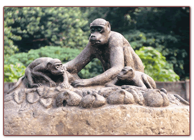 詹龍?jiān)诎⒗锷疆?dāng)采石工的歲月里常常觀察成群的臺灣獼猴在溪澗林邊嬉戲,猴子的活潑俏皮、母猴帶小猴的親情體態(tài),深深吸引著他,于是閑暇之間,他隨手撿來石頭,把猴子的生態(tài)化做永恒的石雕藝術(shù)。