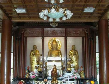 彌陀禪寺位于嘉義市的東南郊,前臨八掌溪,視野廣闊,晨鐘暮鼓、梵音繚繞,“彌陀鐘曉”同時也是嘉義八景之一。彌陀禪寺建于清干隆17年,光復后曾重建,外觀以金黃色為主。正殿供奉金身阿彌陀佛像,并以玄奘大師及開山袓師陪祀左右。