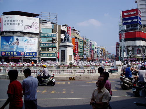 現在的中山圓環又稱嘉義噴泉,位于中山路與文化路交岔口,是縣轄市時代,于1969年間筑造,拆除違建建七彩噴水池于此,池中恭鑄孫中山先生銅像,自此成為嘉義市的新地標。