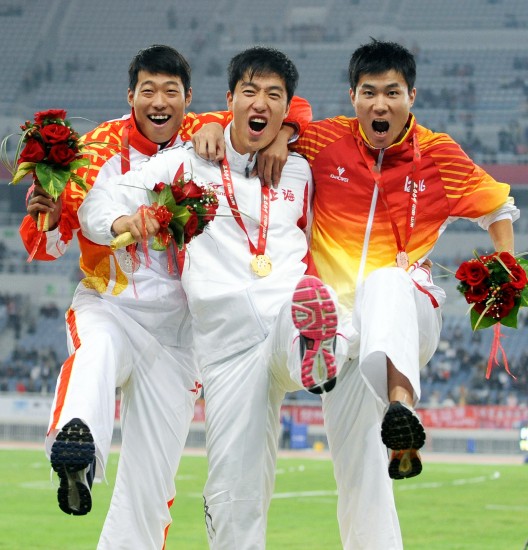 濟南奧體中心,劉翔是當仁不讓的主角。在那長長的110米跑道上他是絕對的王者。在金牌的領獎臺上,他是讓攝影師瘋狂的焦點。在頒獎儀式上,劉翔再次用他充滿創意的動作吸引了所有的目光。