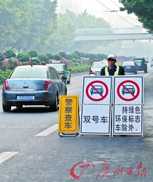 廣州市黃埔、天河、荔灣、越秀、海珠、白云區行政區域,以及番禺區的大學城、南沙港快速路(南環高速路—清河東路)、清河東路(南沙港快速路—石清公路)范圍內實行單雙號限行。范圍比亞運會期間縮小了。