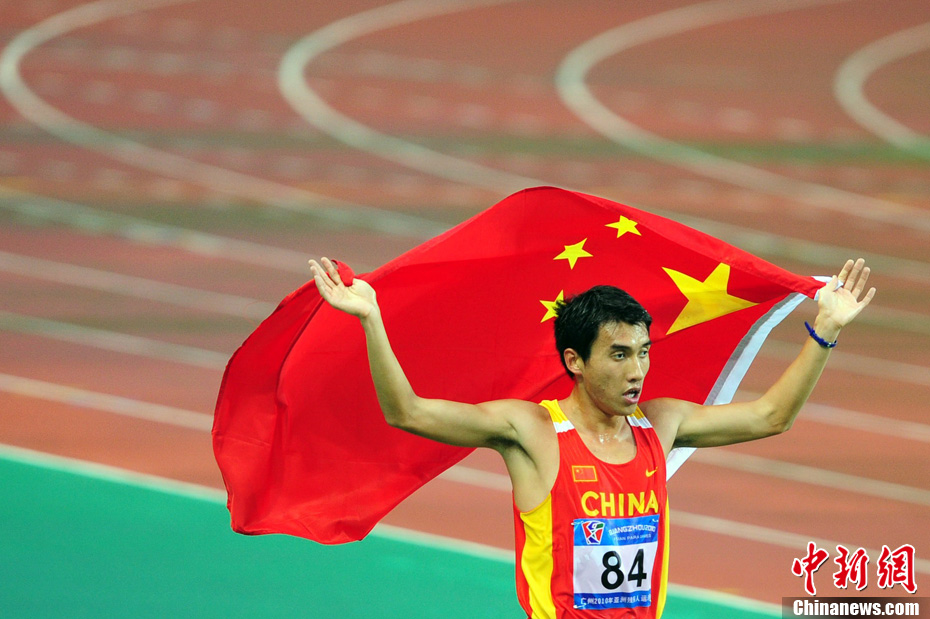 12月15日,中國選手祁順在廣州舉行的2010亞殘運會田徑男子5000米T12級決賽中,以15分54秒01的成績奪得金牌。中新社記者 陳文 攝