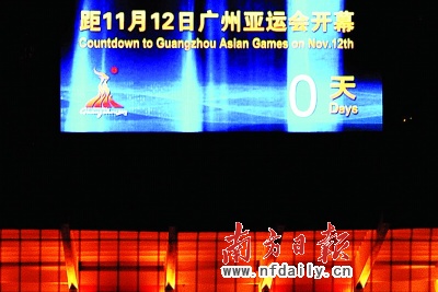 昨晚8時整,羊城所有亞運倒計時牌全部顯示“0”,意味著廣州亞運會正式到來。在英雄廣場、白云賓館及各地鐵站的亞運倒計時牌前,許多市民紛紛拍照以留下這一歷史時刻。圖為位于天河體育中心的亞運倒計時牌。南方日報記者王輝盧慧明姚藝曲攝影報道