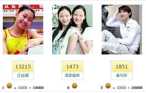 事實上,江鈺源這塊金牌拿的并不輕松,雖然體操女隊整體表現不錯,但是江鈺源卻失誤連連,先是從平衡木上掉下來,然后又在自由操比賽當中出現較大失誤,直到最后領獎完畢,這位體操隊隊長還在掉眼淚。好在這些失誤絲毫沒有影響她的人氣,在網友票選環節當中,從第一天開始江鈺源就遙遙領先,首日有2400多網友投票給她,在這一項當中遙遙領先潘曉婷(博客)和何雯娜(微博博客)等人。有了女團這枚金牌壓陣,在后面這些天的選舉當中,江鈺源地位也應該相對穩固。