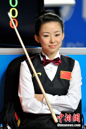 11月19日下午,廣州亞運會女子美式9球單打決賽在亞運城體育館上演,經過2個多小時的激烈角逐,中國選手潘曉婷以7:5力克中華臺北選手周婕妤,最終奪冠。中新網記者 金碩 攝