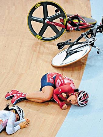 據(jù)香港《星島日?qǐng)?bào)》報(bào)道,廣州亞運(yùn)女子場(chǎng)地記分賽,出現(xiàn)振奮人心的一幕。有“女版黃金寶”之稱的香港自行車選手黃蘊(yùn)瑤,向世人示范了什么才是鋼鐵意志,她在比賽中段遇上嚴(yán)重意外,身體更被單車兩度輾過(guò),但仍堅(jiān)忍肋骨骨折及肺氣腫傷痛繼續(xù)比賽,終為香港取得一面“血淚銀牌”。頒獎(jiǎng)后須坐輪椅離場(chǎng)的黃蘊(yùn)瑤不時(shí)激動(dòng)痛哭,令全場(chǎng)所有人動(dòng)容。
