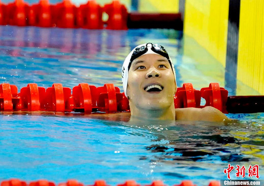 廣州亞運賽場上,韓國泳壇一哥樸泰桓無疑是韓國民眾最受關注的,而他也不負眾望,在男子200米、400米自由泳上都力克被稱之為其最大對手的中國名將張琳獲得冠軍,而他在賽場上表現出來的霸氣也讓其他對手膽寒。中新社發 王東明 攝
