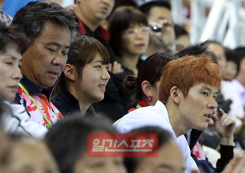 雖然亞運會游泳比賽已經全部結束,但是名將樸泰桓并沒有馬上回國。22日,樸泰桓與隊友鄭達萊來到廣州奧體水上競技場,為2010廣州亞運會的韓國男子跳水選手加油。細心的朋友不難發現,樸泰桓的紅色頭發已經換成了橙色。