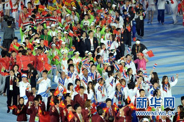 11月27日,代表團(tuán)在閉幕式上入場(chǎng)。當(dāng)日,第16屆亞運(yùn)會(huì)閉幕式在廣州市海心沙島舉行。 新華社記者李勇攝