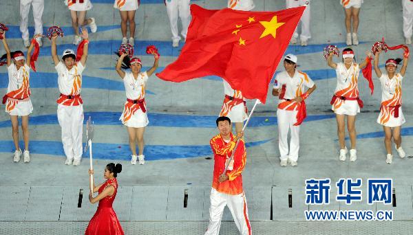 王治郅任旗手 揮舞國旗入場