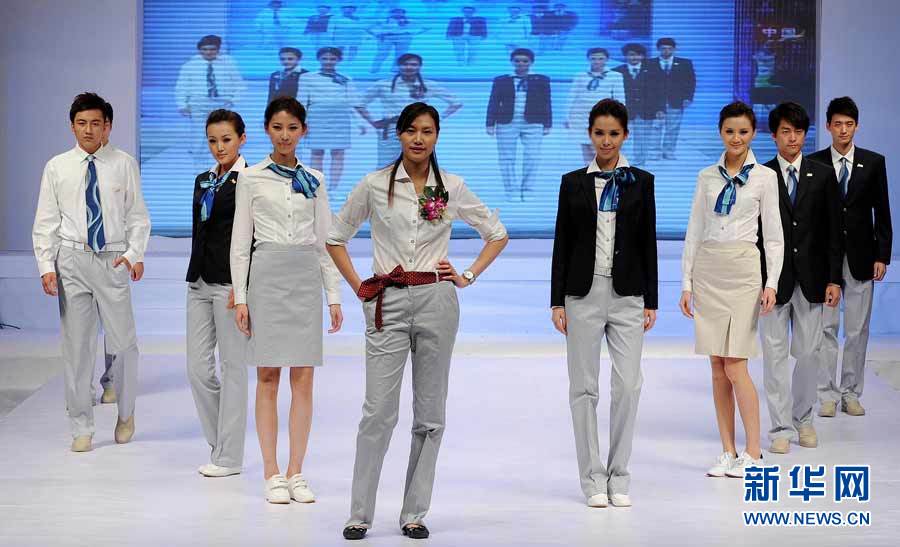 11月7日,作為一名廣州亞組委志愿者部的工作人員,羽毛球名將謝杏芳(左四)穿著亞運官員制服在T臺上進行展示。當日,廣州亞運、亞殘運會官員、工作人員、亞運技術官員(裁判)和技術代表(仲裁)總共5套亞運官方正裝制服在廣州發布。加上早前發布的亞運會頒獎禮儀服“行云流水”和白色立領升旗服,至此,7套亞運會官方服裝已經全部公開亮相。 新華社記者 梁志瑋 攝