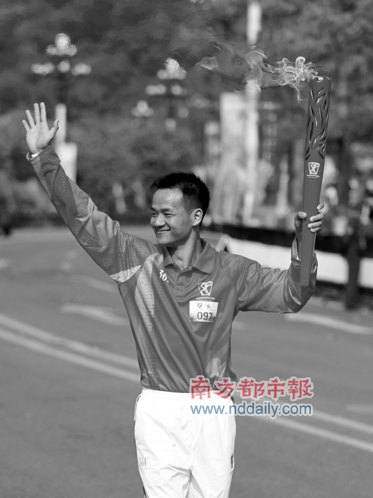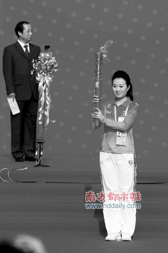 昨天的第一棒南欣是中國殘聯愛心大使和廣州亞殘運會愛心大使,她同時是一位歌唱家。在輕松完成首棒的傳遞后,被大批電視臺記者簇擁著的南欣難掩興奮激動地說:“之前從來沒想過能擔任首棒火炬手,剛才在火炬手投放車上等候時,心情已經很激動,但當我的手托起火炬時突然感覺很神圣。”