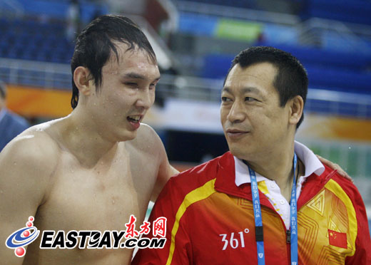 楊博尊與教練在一起交談 點擊查看精彩組圖