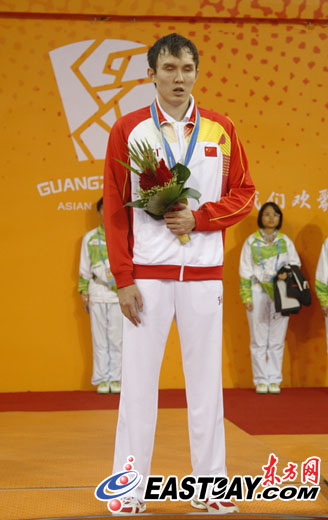 楊博尊在領獎臺上輕唱國歌 點擊查看精彩組圖