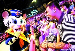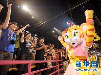廣州亞運(yùn)盛會(huì)越來(lái)越近,氛圍也越來(lái)越濃,各種迎亞運(yùn)的活動(dòng)也越來(lái)越熱烈。昨天下午,長(zhǎng)隆國(guó)際大馬戲表演場(chǎng)內(nèi),近萬(wàn)名觀眾在廣州亞運(yùn)動(dòng)漫人物志愿者——卡卡虎的帶領(lǐng)下,齊跳亞運(yùn)助威操,為亞運(yùn)加油助威! (記者王飛)