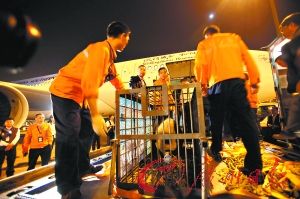 亞運(yùn)熊貓寶寶搭乘專機(jī)飛抵廣州