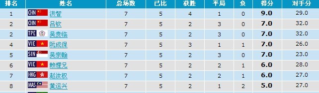 第五輪比賽,第一臺洪智后手和中華臺北老棋王吳貴臨,第二臺呂欽后手和越南勁敵阮成保。其他比賽如下:
