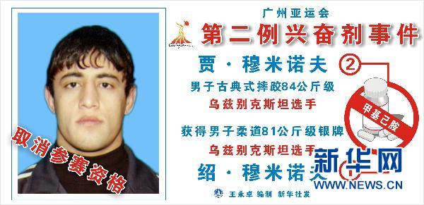 本屆亞運(yùn)會(huì)首起興奮劑事件于19日公布,烏茲別克斯坦另外一名叫紹·穆米諾夫的柔道選手在獲得男子81公斤級(jí)銀牌后同樣被發(fā)現(xiàn)使用甲基己胺。