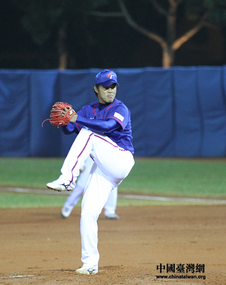 18日晚,中華臺北隊憑借出色發揮4 :3力克日本隊挺進決賽。圖為中華臺北隊員投球瞬間。(中國臺灣網 沈鵬 攝)