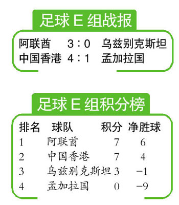 昨天(11日)下午,2010年廣州亞運會結束了男足比賽E組的較量,中國香港隊在花都體育場以4比1大勝孟加拉隊,小組賽3戰(zhàn)2勝1平積7分,雖然因凈勝球的劣勢獲得小組次名,但卻是時隔52年之后再次在亞運會的足球比賽中出線晉級淘汰賽。
