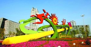 廣州花城廣場(chǎng),鮮花扮靚迎亞運(yùn),抬頭可見“藍(lán)藍(lán)的天上白云飄”