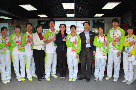 隨后,曾穎如、童慧還為出席座談會的亞運優秀黨團員志愿者優秀代表戴上一枚特制的,象征著榮譽和身份的“創先爭優亞運黨團員志愿者徽章”。