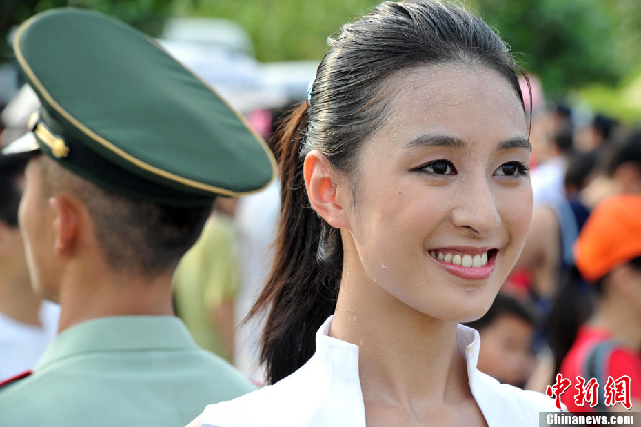 美女禮儀“汗”衛大運火炬