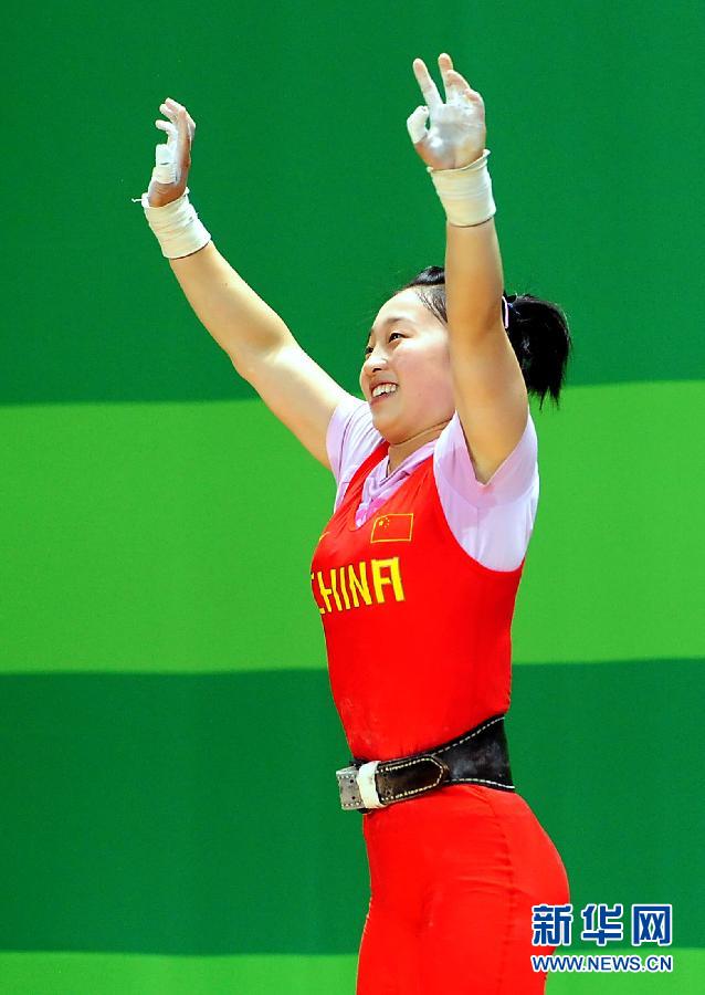 8月13日,肖鴻宇在比賽后向觀眾致意。當日,在深圳市體育運動學校綜合訓練館舉行的第26屆世界大學生夏季運動會女子48公斤級舉重比賽中,中國選手肖鴻宇以總成績188公斤獲得冠軍。新華社記者王頌攝