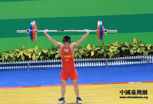 中國(guó)隊(duì)選手黎立志以總成績(jī)273公斤獲得男子56公斤級(jí)的舉重冠軍。(中國(guó)臺(tái)灣網(wǎng) 于斯文 攝)