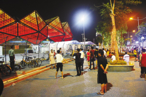 來一個V的手勢”、“快點照”,隨著一聲“咔嚓”的快門聲,一張笑臉與美輪美奐的大運場館夜色融在了一起。最近一周,每當夜幕降臨,矗立在龍崗大運新村內的大運會主場館“水晶石”就會“穿上”華麗的衣裳,展示自己的風采。隨著大運會開幕的臨近,慕名而來參觀水晶石夜景的市民越來越多。