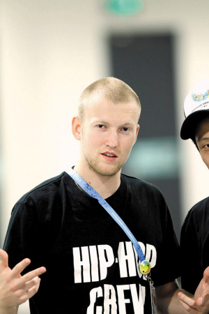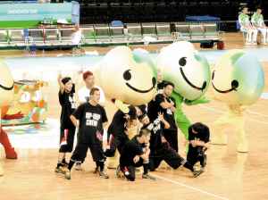 UU是萬能的,它是歡笑的笑臉,也是搞怪的吉祥物,它更是點燃全場數萬名觀眾激情的神奇DJ。在龍崗體育中心籃球館,每到比賽中場休息時,UU就會化身DJ,一邊搓碟、一邊舞動,在它身邊還有一個能說會道的說唱歌手,九個活力無限的街舞高手,他們組成了大運嘻哈團。如果整個場館是激情四射的火藥庫,那么嘻哈團就是那根點燃觀眾激情的導火索。