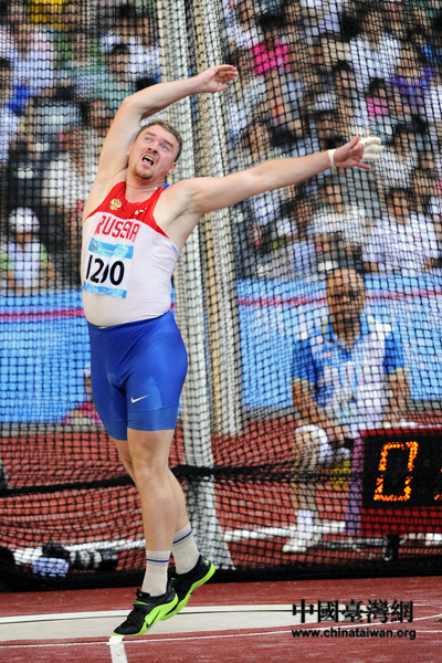 中國臺灣網8月18日深圳消息 17日,第26屆深圳大學生運動會男子鏈球決賽在深圳龍崗大運中心體育場進行。波蘭選手沃伊迪克·帕維爾(FAJDEK Pawel)以78.14米的成績獲得冠軍,斯洛伐克選手洛姆尼齊·馬塞爾(LOMNICKY Marcel)奪得亞軍,意大利選手波韋利亞諾·洛倫佐(POVEGLIANO Lorenzo)獲得季軍。不一樣的精彩,也有美麗的瞬間。賽場上,運動員的舉手投足之間無不透射出大運會“從這里出發 不一樣的精彩”的宗旨,令人難以忘懷。(中國臺灣網 董憲超 攝)