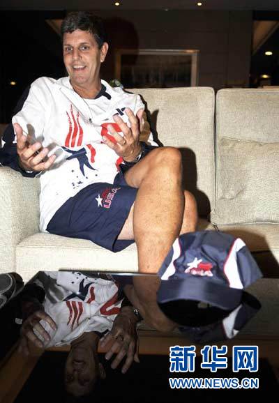 尼爾斯·霍金森,一個高大開朗的美國大個子,他并沒有掌握很多語言,卻已經將足跡留在了世界上的70個國家,他所用的語言很簡單——體育。 霍金森的身份很特殊,他曾經是一個籃球運動員、一個教練、也是一個籃球訓練營組織者和籃球運動的推廣者,F在,他的身份是美國大運會代表團的副團長。霍金森的70國之旅的首站就是中國。那年,19歲的他第一次離開美國,隨美國大學生隊到中國與中國傳奇中鋒穆鐵柱率領的球隊打比賽。這是8月10日,尼爾斯·霍金森在接受專訪。 新華社記者王昊飛攝
