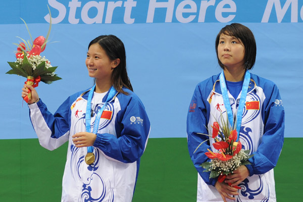 8月22日,在深圳2011第26屆世界大學生運動會跳水項目女子雙人三米板比賽中,何姿/王涵以334.20分獲得金牌。