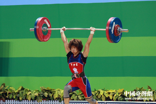 中華臺北選手許淑凈在女子53公斤級舉重比賽中摘得銀牌。(中國臺灣網 于斯文 攝)