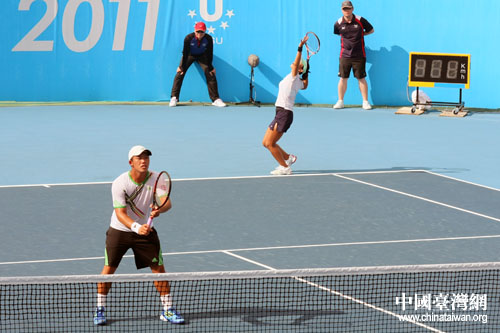 中華臺(tái)北組合李欣翰(左)、詹謹(jǐn)瑋(右)在比賽中。(中國(guó)臺(tái)灣網(wǎng) 于斯文 攝)