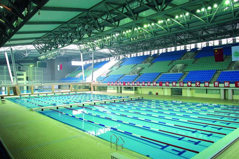體育功能定位為大型多功能綜合性游泳場館,能同時滿足比賽、訓練、健身、游樂等各種需要。其總占地面積54300平方米,總建筑面積41167平方米,擁有觀眾座席4000座,其主要建筑由以下四部分構成: